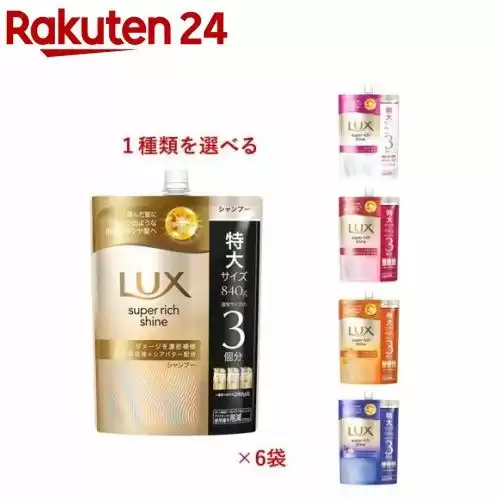 ラックス スーパーリッチシャイン 詰め替え用 ダメージリペア 補修シャンプー 870g 6袋 (30%ポイントバック)