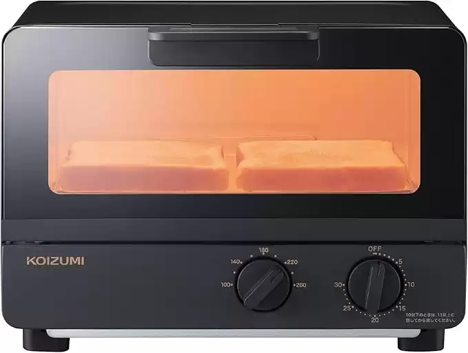 コイズミ オーブントースター 2枚焼き タイマー30分 温度調節 100~260℃ トレー付き 1000W ブラック KOS-1037/K
