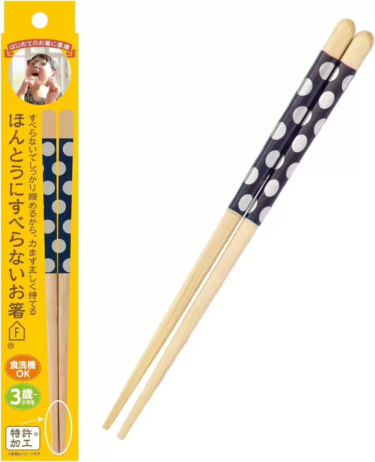藤栄(FUJIEI) ほんとうにすべらないお箸 子供用 18cm 水玉 ブラック HED-012