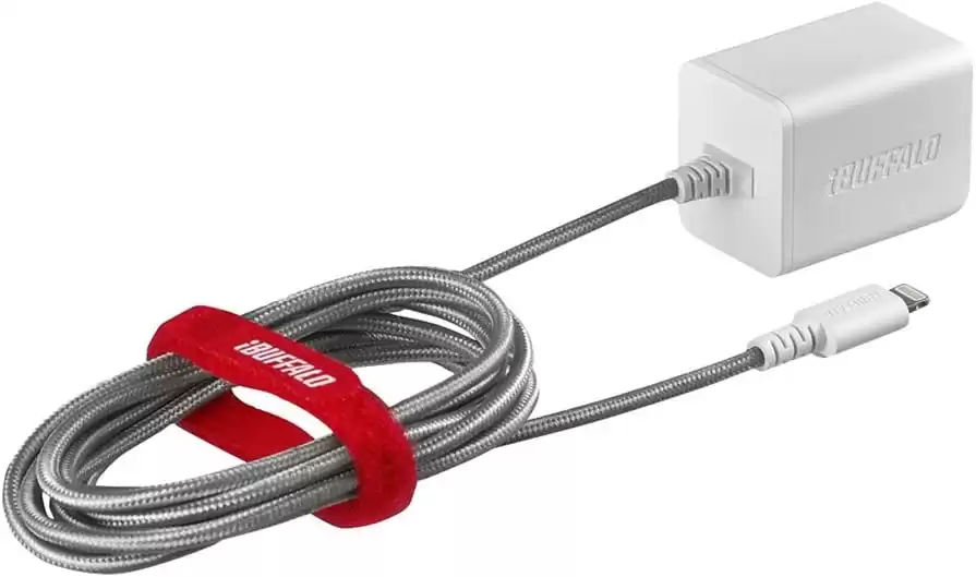 バッファロー(BUFFALO) USB充電器 2.4A急速 Lightning直付け1.5m 高耐久ファブリックケーブル Made for iPod/iPhone/iPad取得 ホワイト BSMPA2403LC1WH