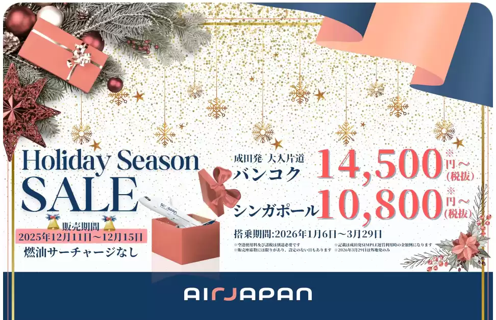 AirJapan Holiday Season SALE 国際線航空券