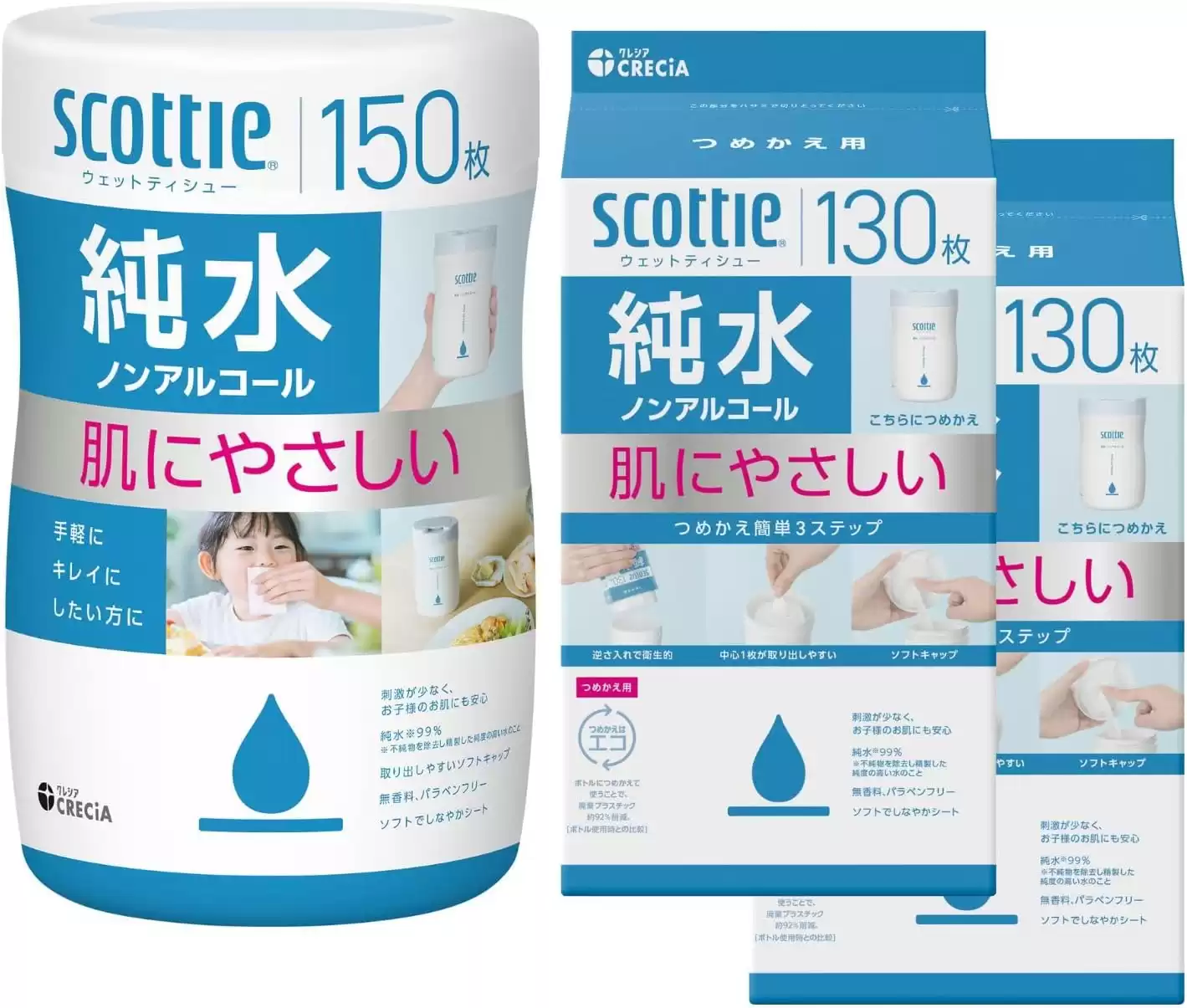 スコッティ ウェットティッシュ 純水 本体150枚+詰替130枚2個