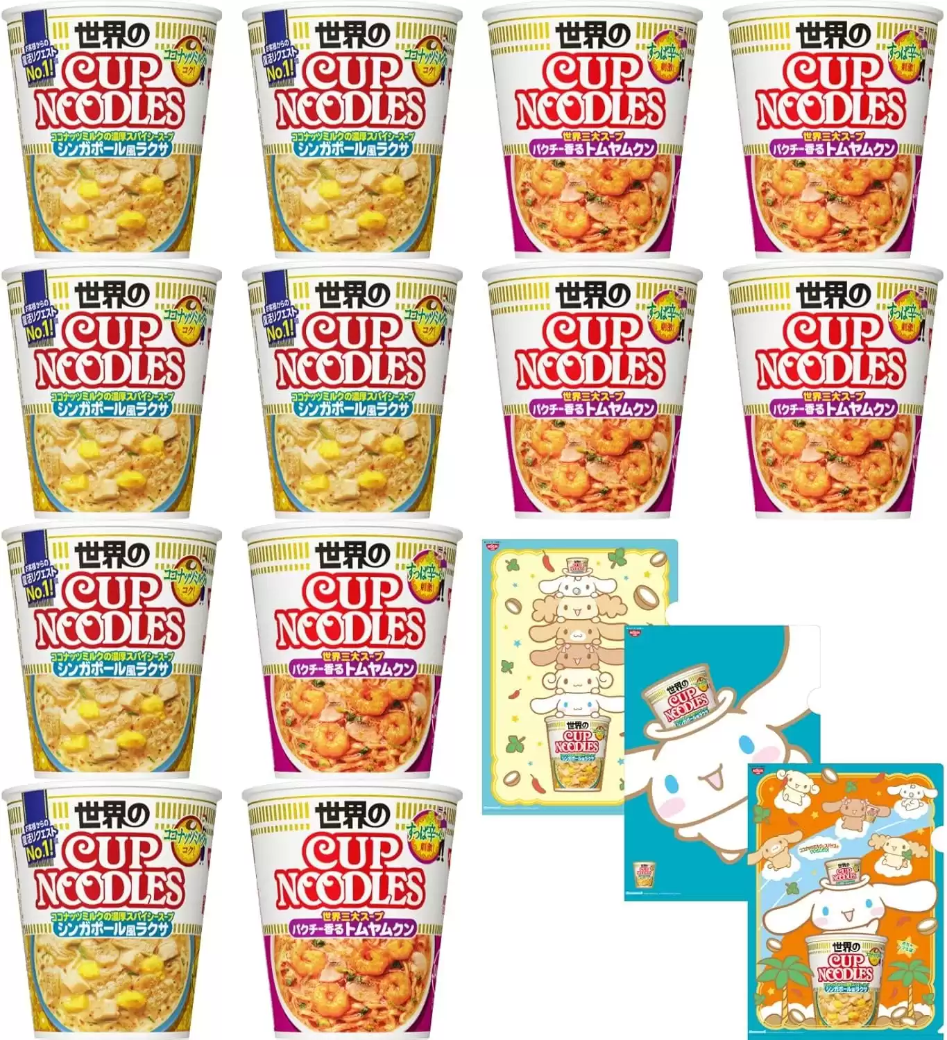 日清食品 カップヌードル ラクサ・トムヤムクン各6個 計12個 + シナモロール オリジナルデザインクリアファイル3種×各1枚 コンプリートセット