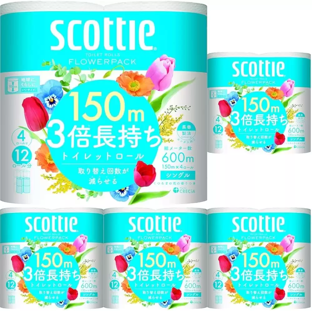 スコッティ トイレット シングル 3倍長持ち 150m 4ロール フラワーパック × 5